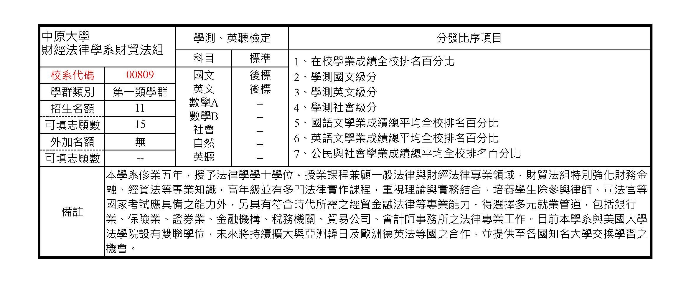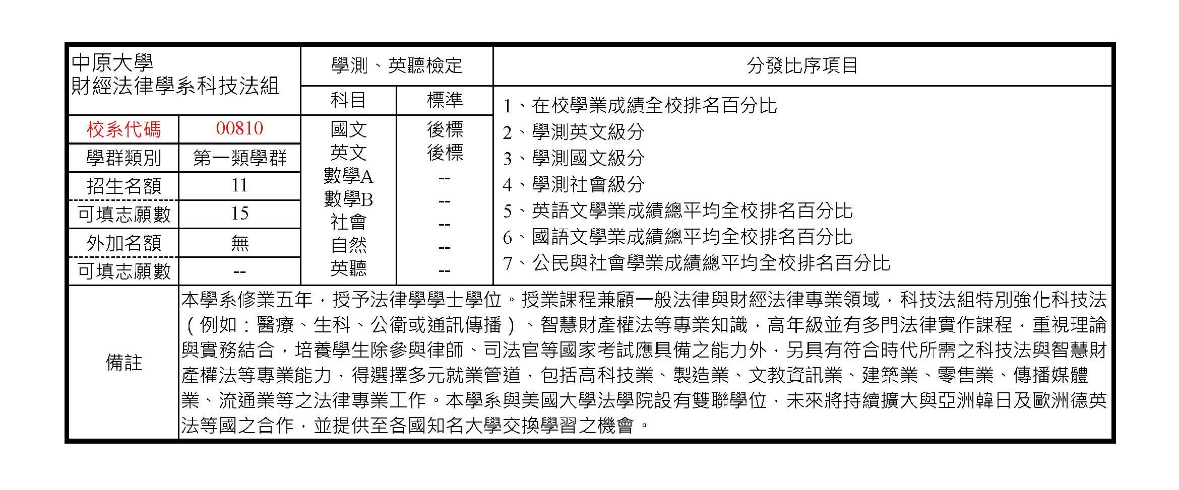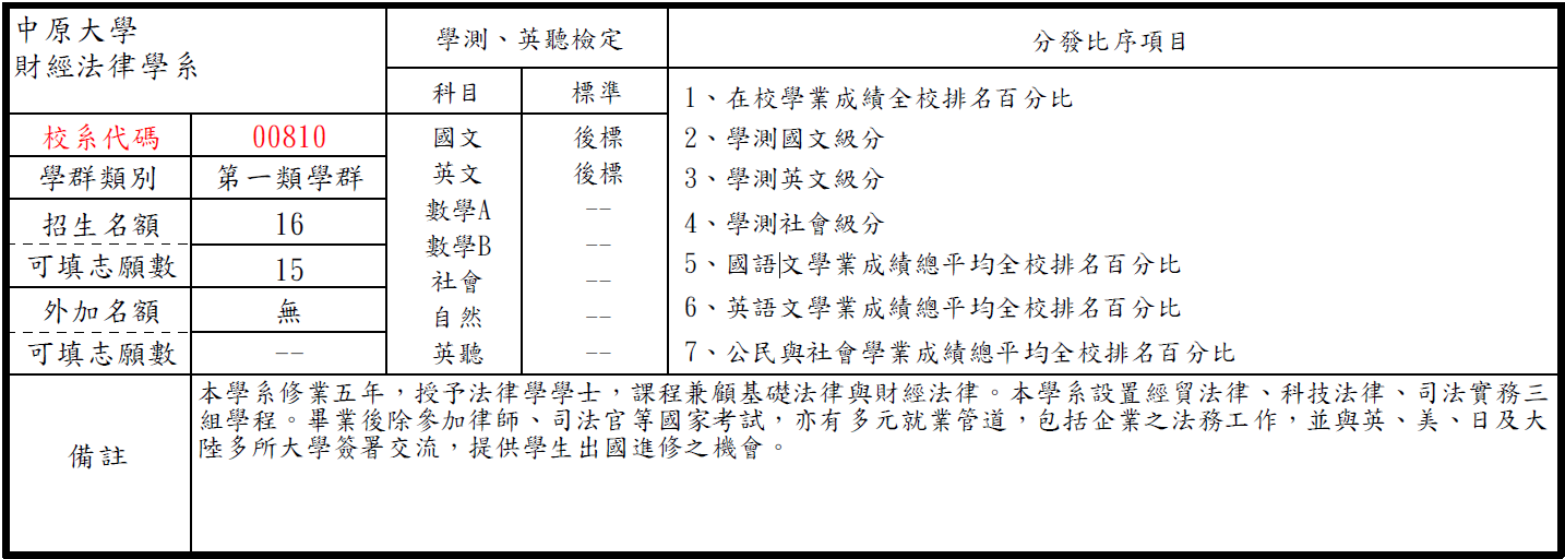 (總成績同分參酌之順序:1.學測英文級分 2.學測國文級分 3.面試 4.審查資料)