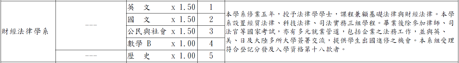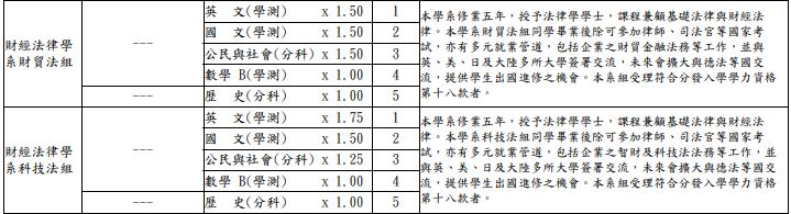 採計與加權:英文×1.5、國文×1.5、公民與社會×1.5、歷史×1