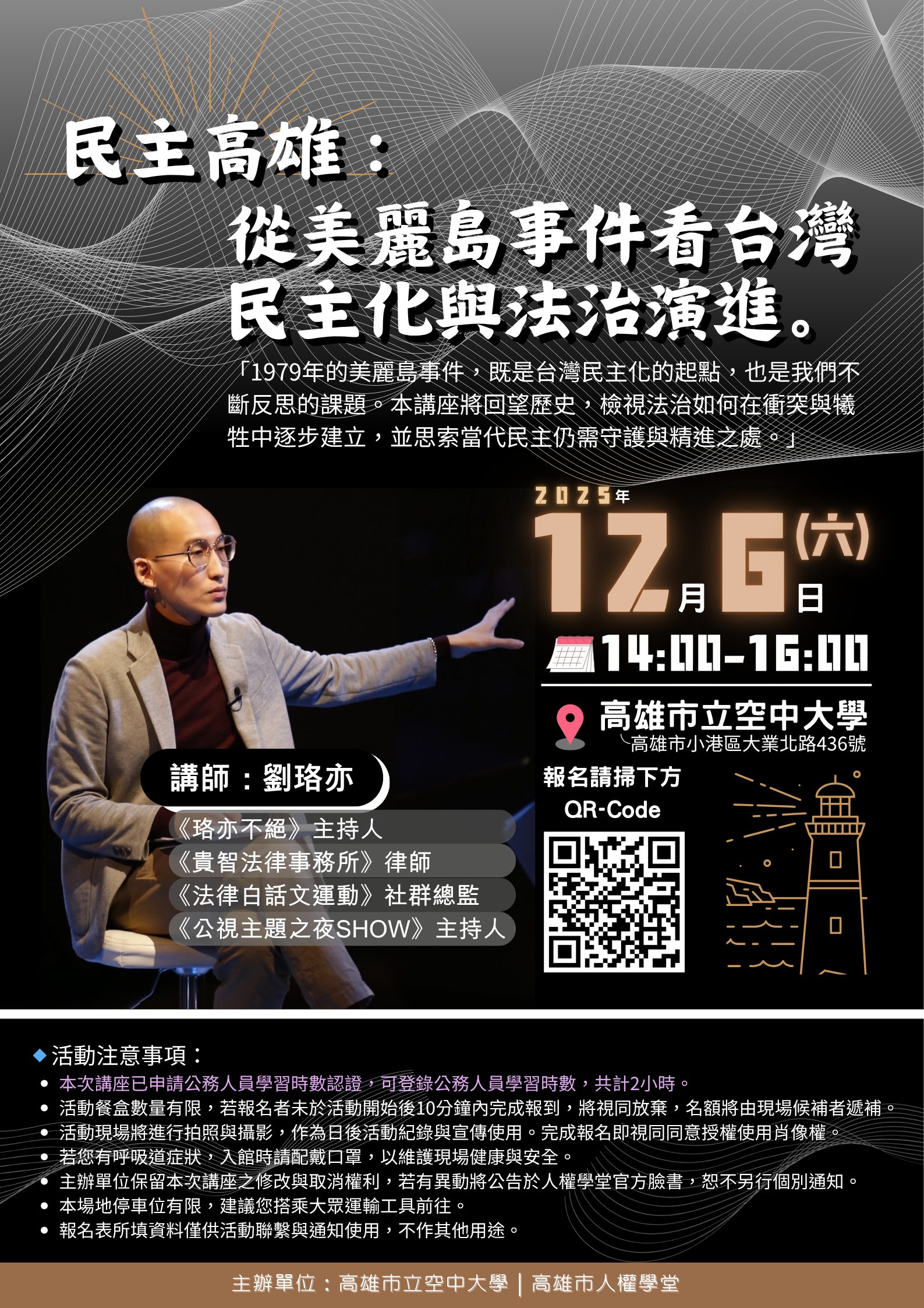 「民主高雄:從美麗島事件看台灣民主化與法治演進」講座