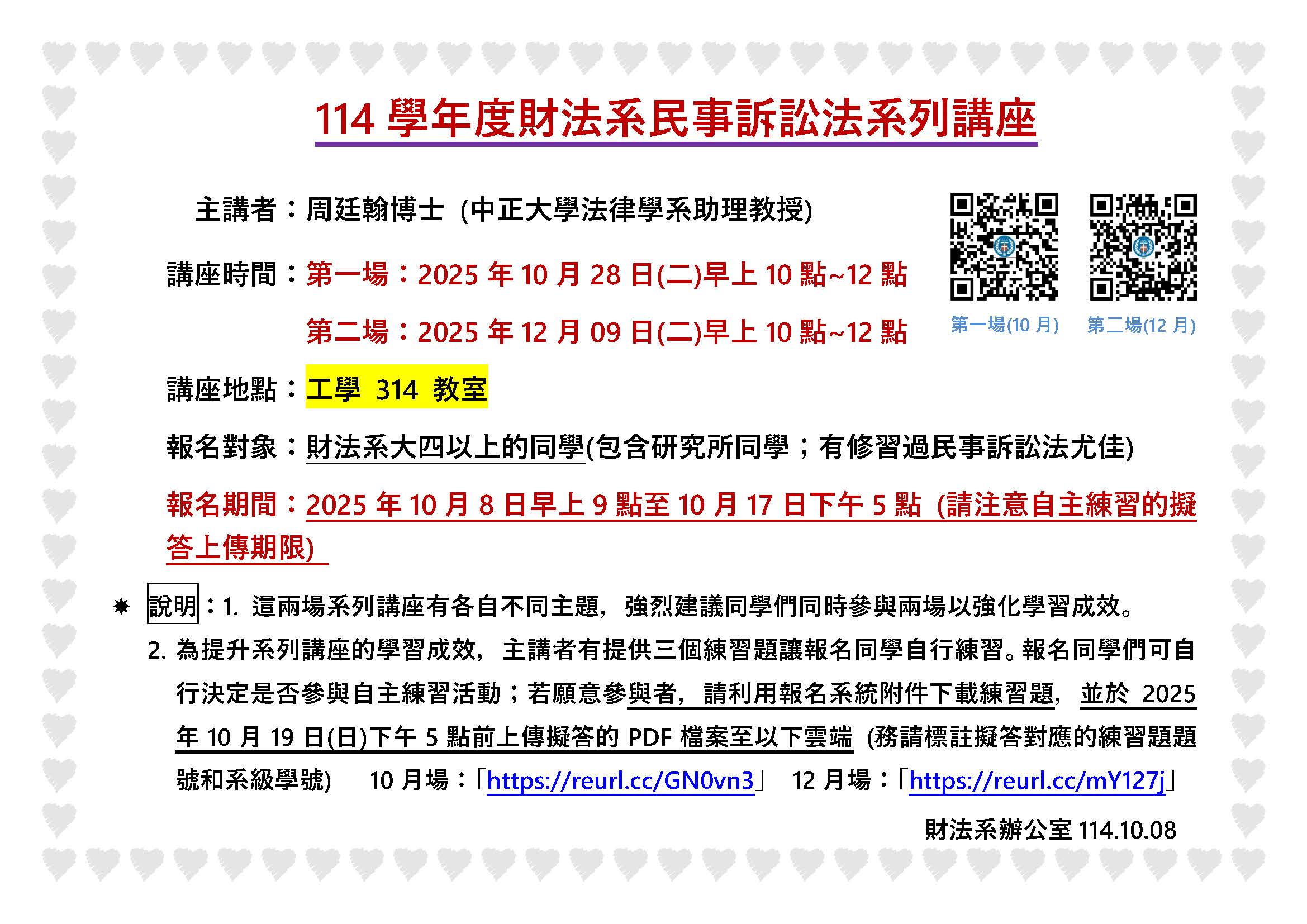 限於財法系大四以上同學(包含研究生;有修習過民事訴訟法尤佳)