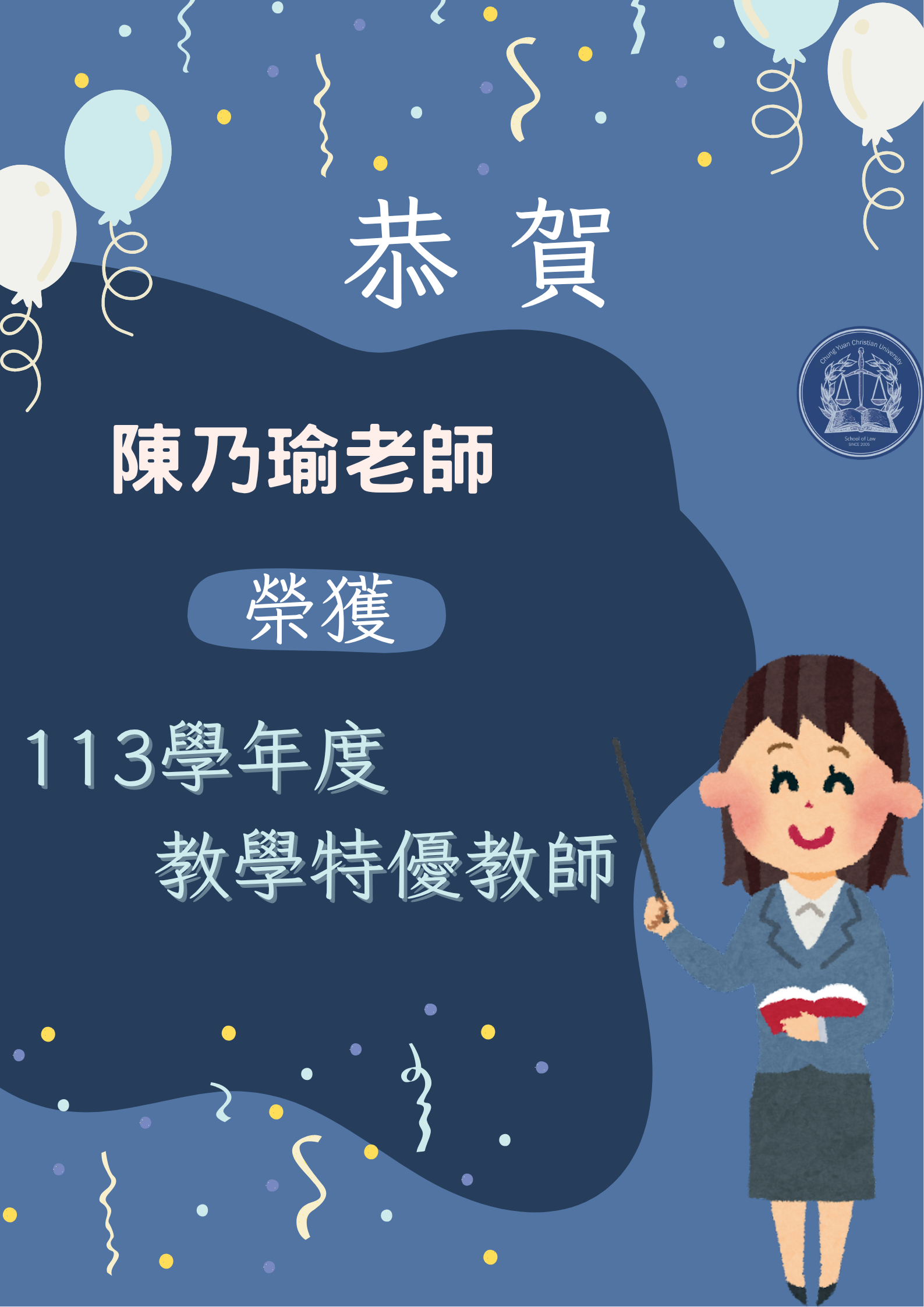 賀!陳乃瑜助理教授獲113學年度教學特優教師