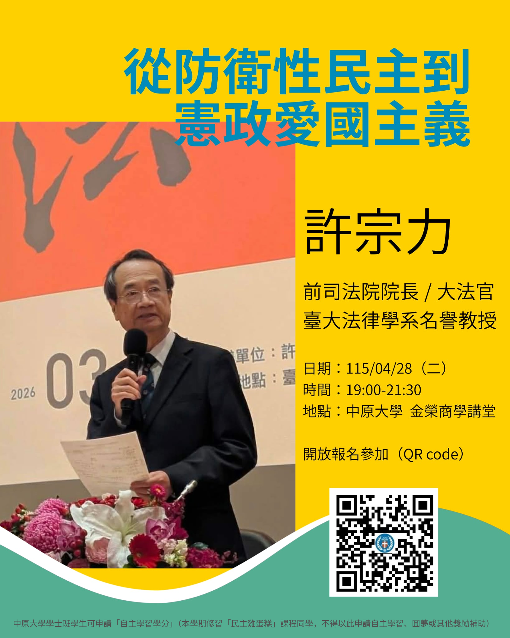 114-2「民主雞蛋糕」課程/校自主學習課程專題演講─ 從防衛性民主到憲政愛國主義